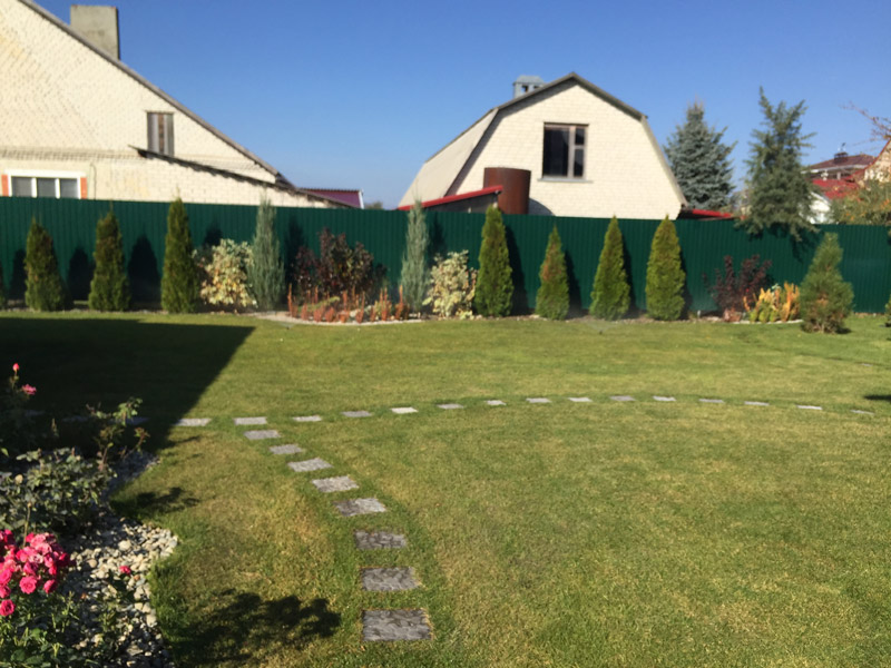 - Заменили рулонный газон в местах повреждения от строительных работ.